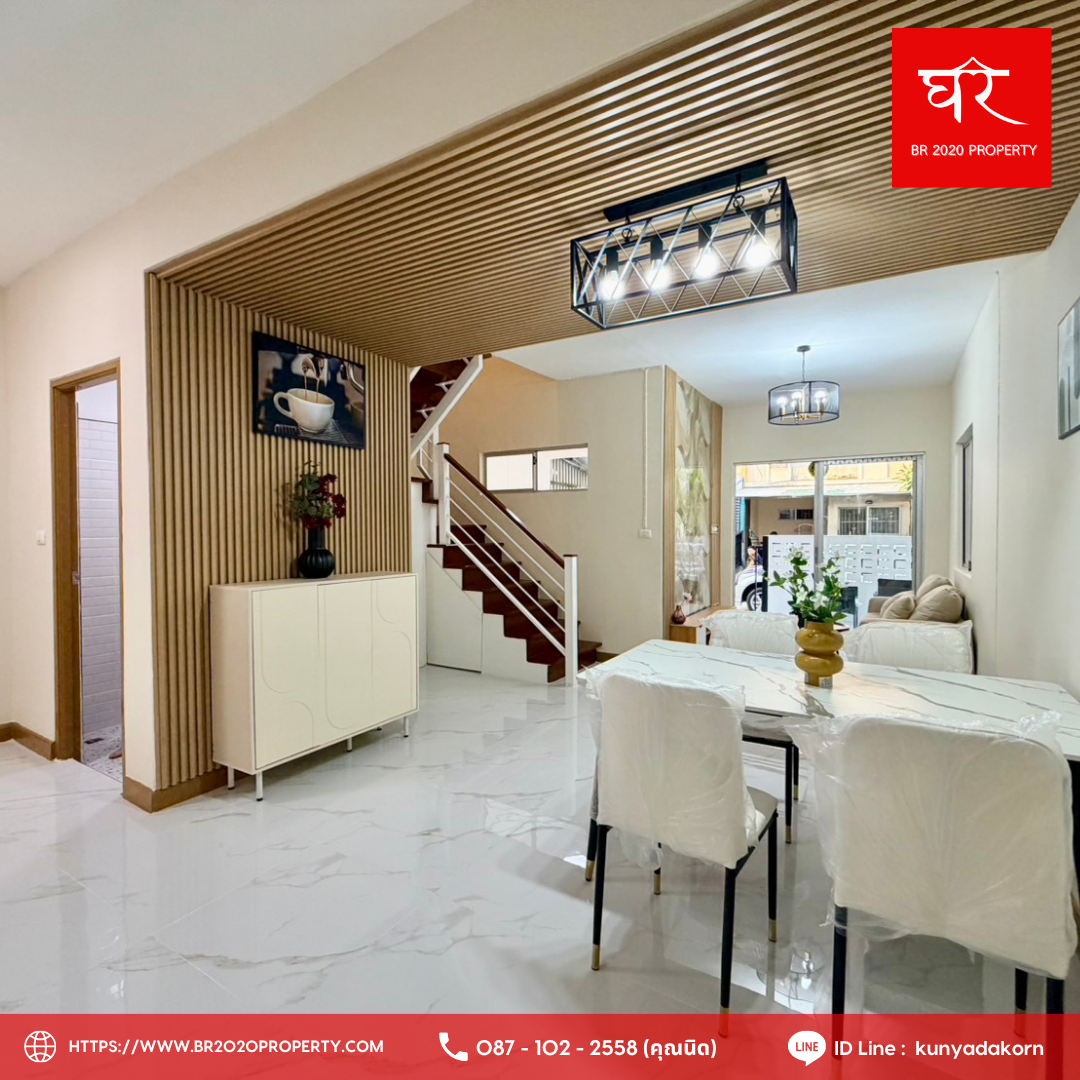 รายละเอียดทรัพย์สิน : ทาวน์เฮ้าส์ 2 ชั้น เนื้อที่ 22.6 ตรว. 3 ห้องนอน 2 ห้องน้ำ 1 ห้องครัว จอดรถ 2 คัน
